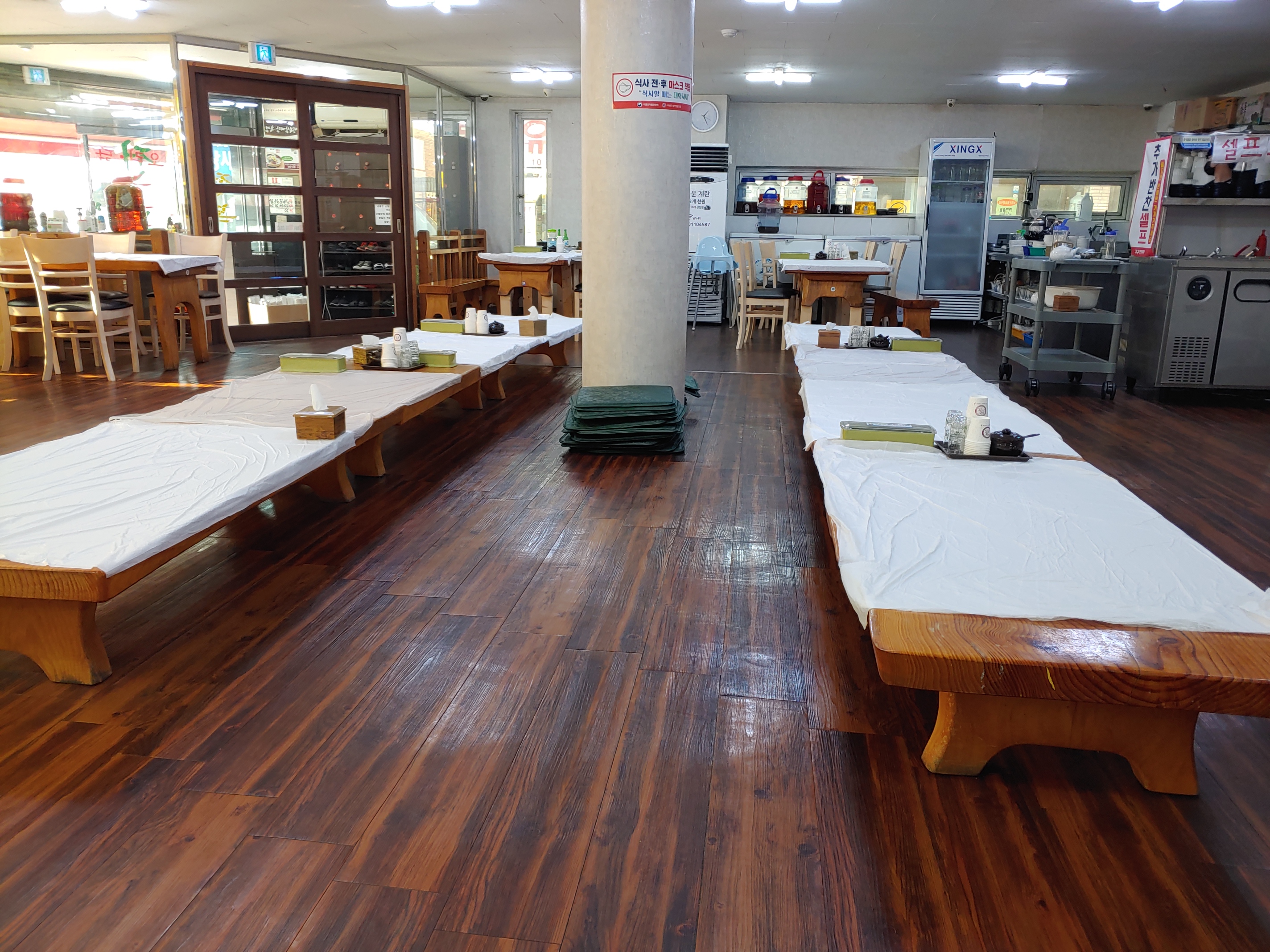 요즘은 어떤음식점이든 원산지 표시가 되어야하는데 구구삼계탕은 테이블 바로 옆에 원산지 표기가 정확히 되어있었다. 오리, 닭, 삼계탕, 전복, 누룽지는 전부 국내산. 이중 김치, 깍두기 고춧가루는 중국산이다. 90%가 국내산이라는점.